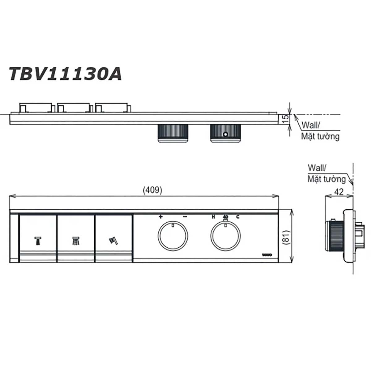 Thông số kỹ thuật Bảng điều khiển sen âm tường TOTO TBV11130A TBN11DC0A 3 đường nước