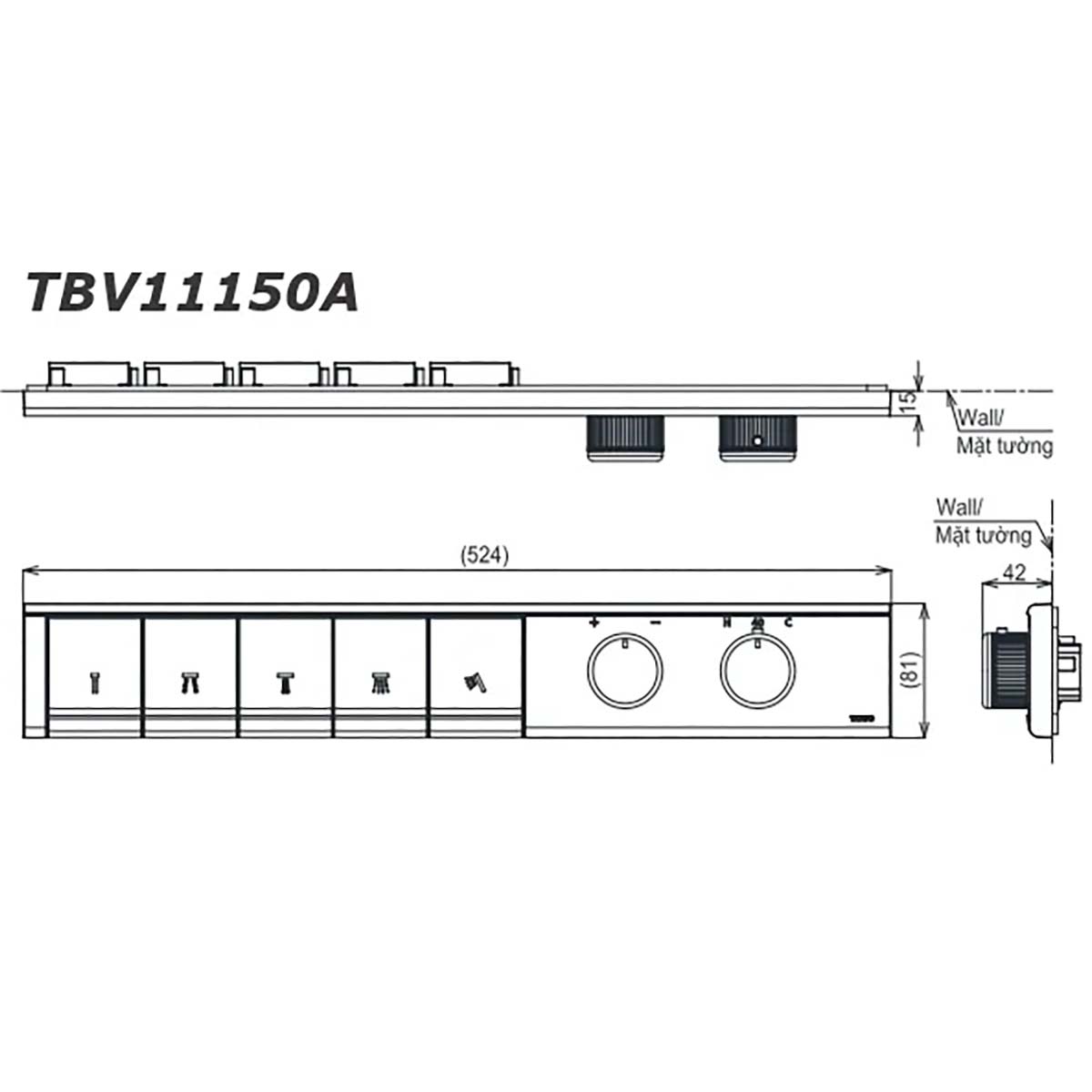 Thông số kỹ thuật Bảng điều khiển sen âm tường TOTO TBV11150A TBN11HC0A 5 đường nước