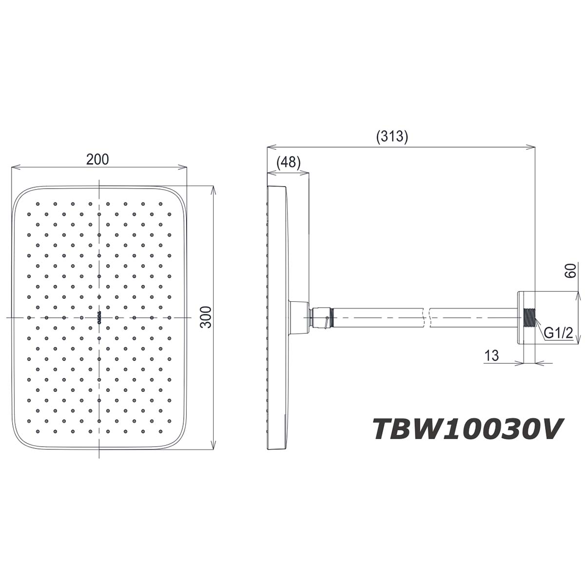 Thông số kỹ thuật Bát sen âm tường TOTO TBW10030V gắn trần