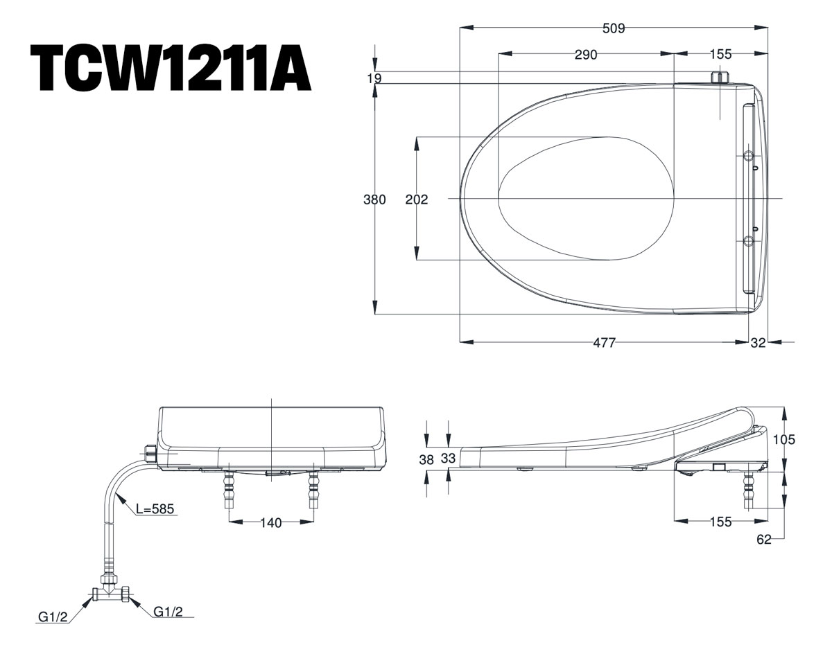 Bản vẽ kĩ thuật Bồn cầu thông minh TOTO MS857DE4 nắp rửa cơ TCW1211A