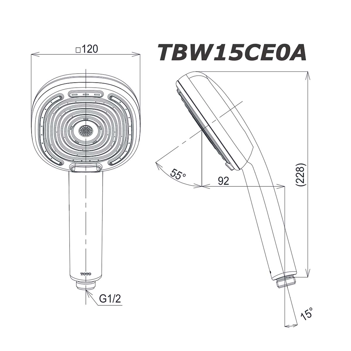 Bản vẽ kỹ thuật Tay sen tắm TOTO TBW15CE0A massage 4 chế độ