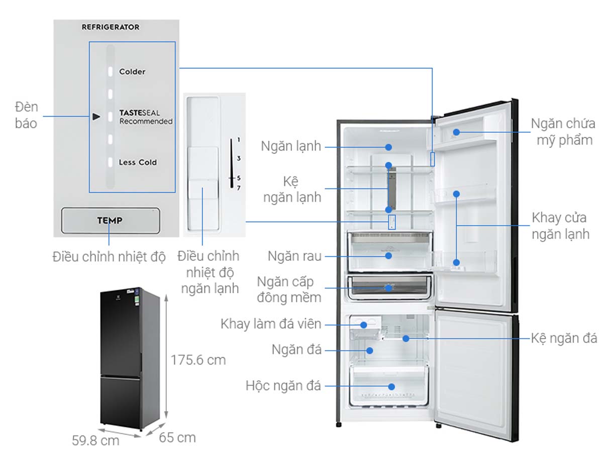 Tính năng Tủ lạnh Electrolux EBB3702K-H 2 cánh 335 lít inverter
