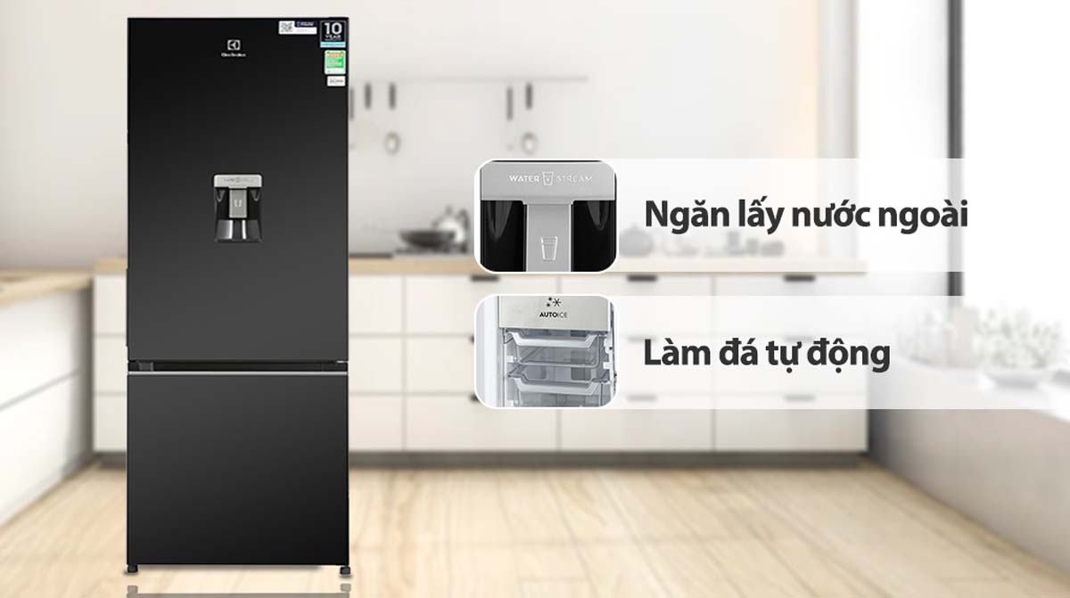 Tủ lạnh EBB3762K-H được trang bị hệ thống làm đá tự động tiện lợi. Chỉ cần đổ nước vào bình chứa, hệ thống sẽ tự làm đá và dự trữ sẵn trong khay. Bạn không cần mất thời gian thao tác thủ công như trước đây mà vẫn có ngay đá viên mát lạnh bất cứ lúc nào. Đây là tính năng rất thiết thực cho các gia đình thường xuyên sử dụng đá hoặc trong những ngày hè oi bức.