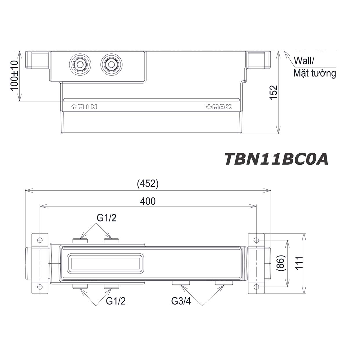 Thông số kỹ thuật Van âm tường TOTO TBN11BC0A 2 đường nước