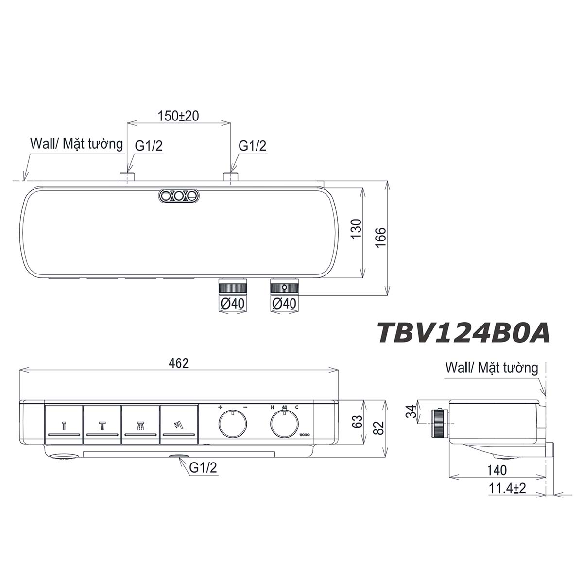 Bản vẽ kỹ thuật Vòi sen tắm TOTO TBV124B0A nhiệt độ